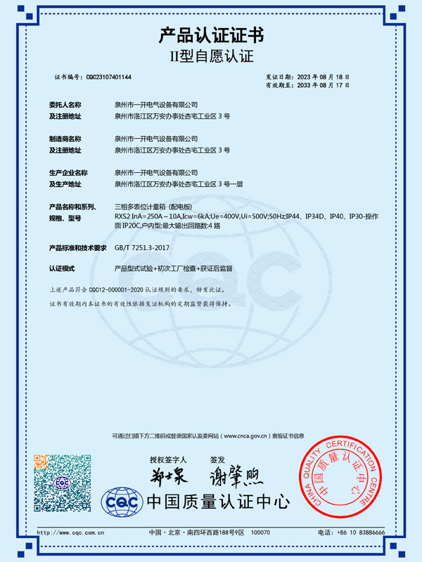 本公司產品已取得國家強制性產品認證(即CCC認證),所建立的體系已通過ISO9001質量管理體系認證,選擇本公司的產品是創造優良工程的保證